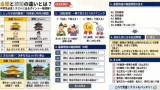 金閣と銀閣、足利義満と義政、どっちがどっち?そんな混乱を解決!「名前」と「数字」を使った覚え方から、北山文化・東山文化の違い、書院造のポイントまで、中学生向けにわかりやすく解説。テスト対策問題付き。