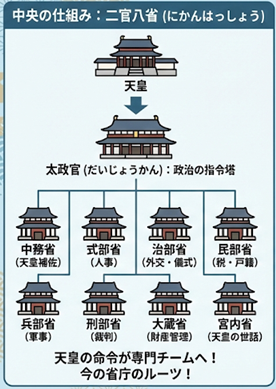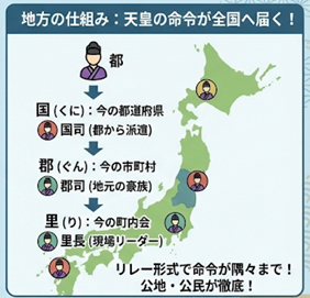天皇の命令が地方にまで行き届く仕組みになっていました。