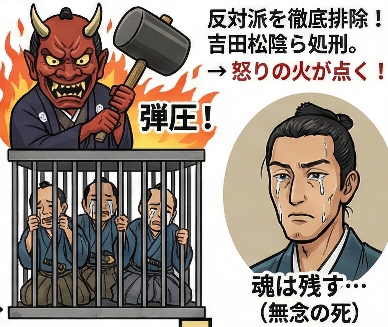 井伊直弼は尊王攘夷運動を弾圧していきます。