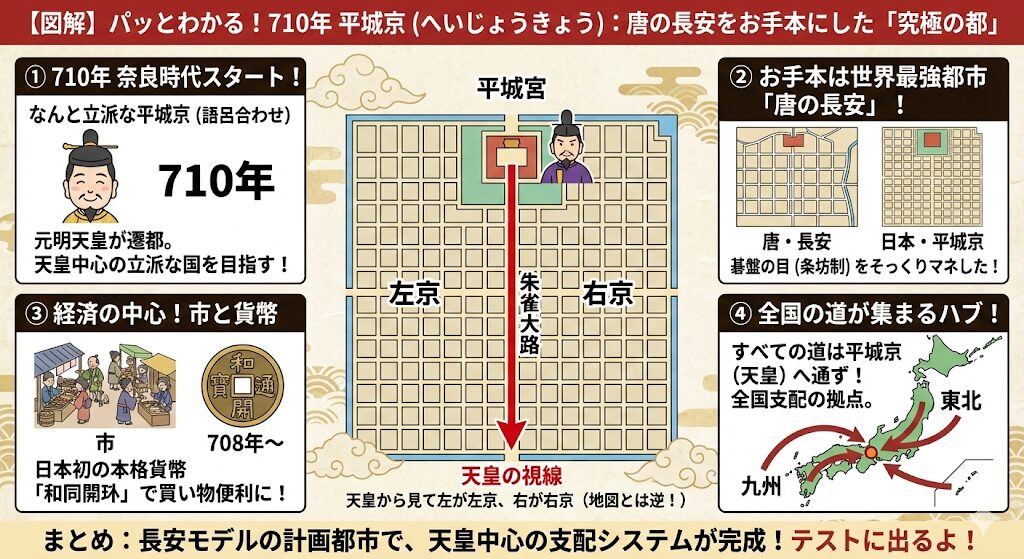 すべて道は「平城京」にいる「天皇」につながるようになっています。