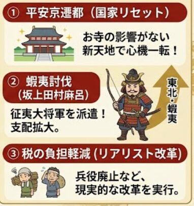 桓武天皇は政治を立て直そうとしていました。