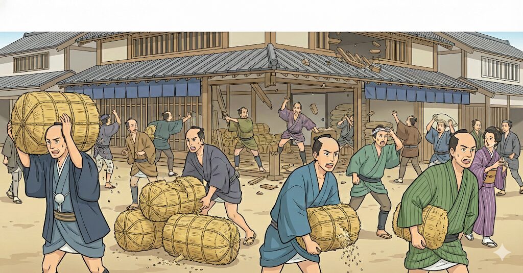 そのため、米を買いしめた商人を襲う「打ちこわし」が起きました。