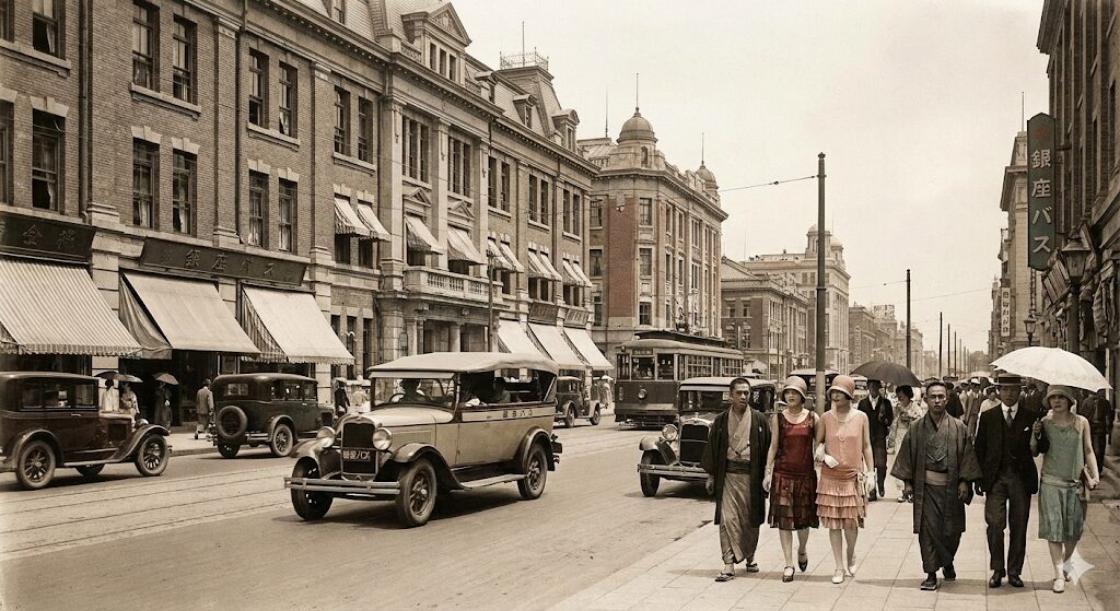 - 街並みの変化: レンガ造りの建物(東京駅など)が増え、街には路面電車やバスが走り始めました。