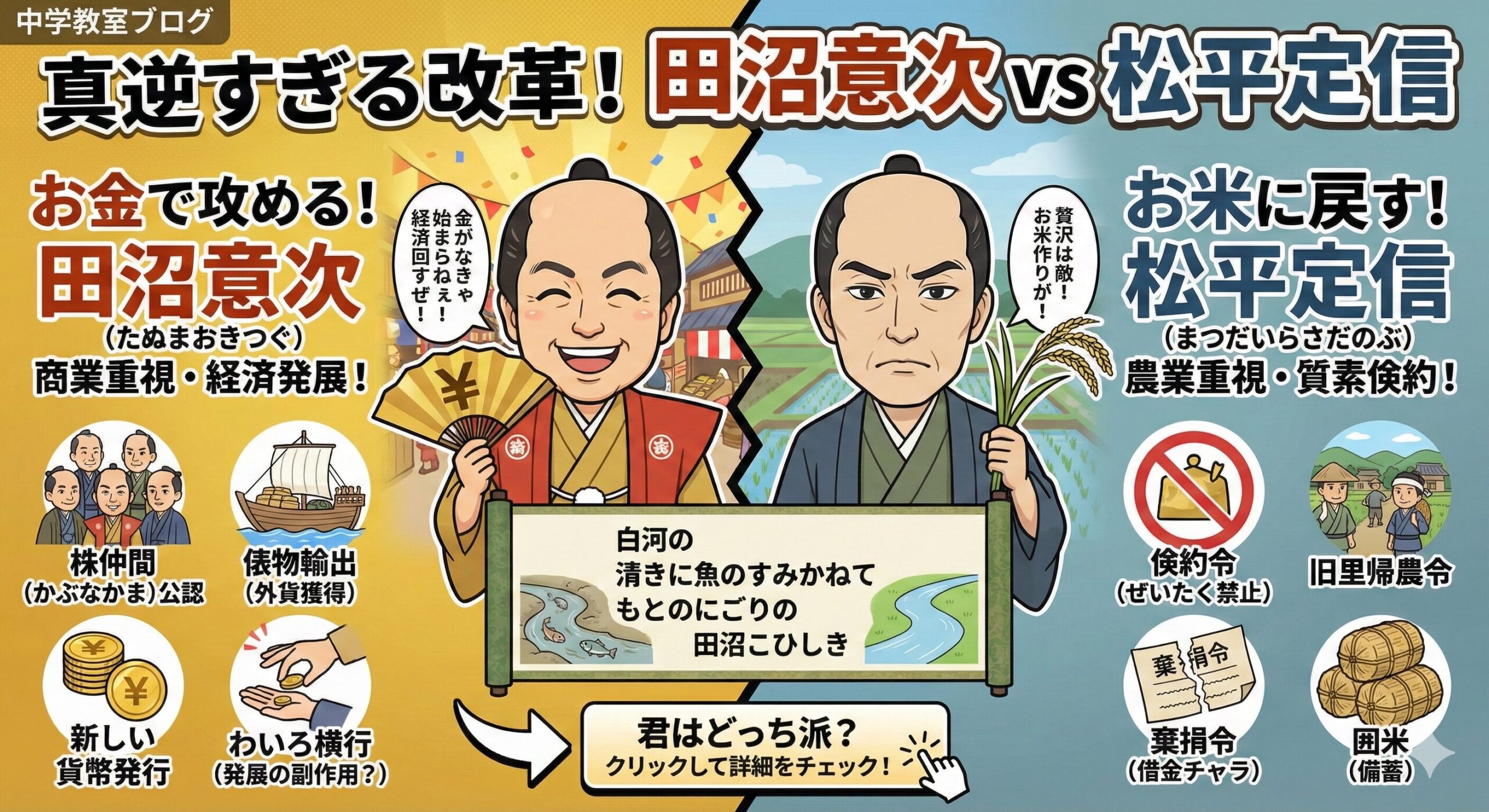 「お金の田沼」vs「お米の定信」~なぜ真逆!?江戸の2大改革~