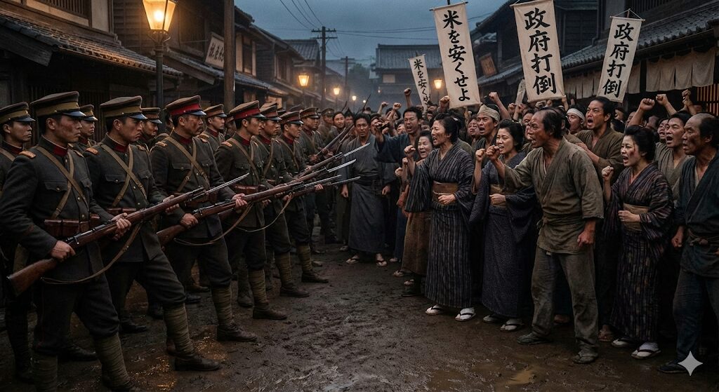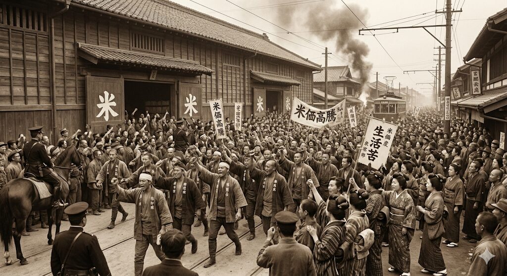 米騒動とは、1918年(大正7年)に、お米の価格高騰に怒った民衆が、日本全国で起こした大規模な暴動のことです。