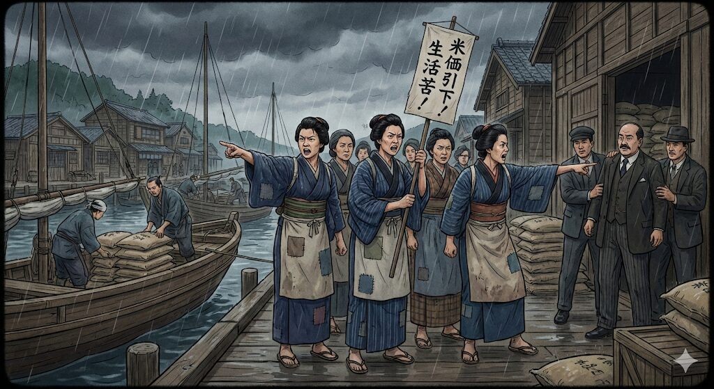 - 始まりは「主婦」だった: 最初に立ち上がったのは、富山県魚津の漁村の女性たちでした。これを「女一揆(おんないっき)」とも呼びます。家族にお腹いっぱい食べさせたいというお母さんのパワーが国を動かしたんですね。
