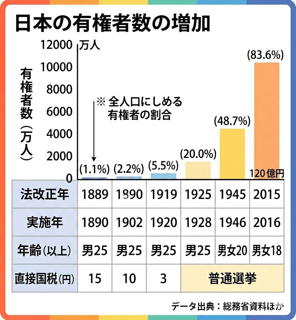 たった1%の超VIP限定から全員へ!?日本の「選挙権」の歴史(1889~2026)を完全マスター!