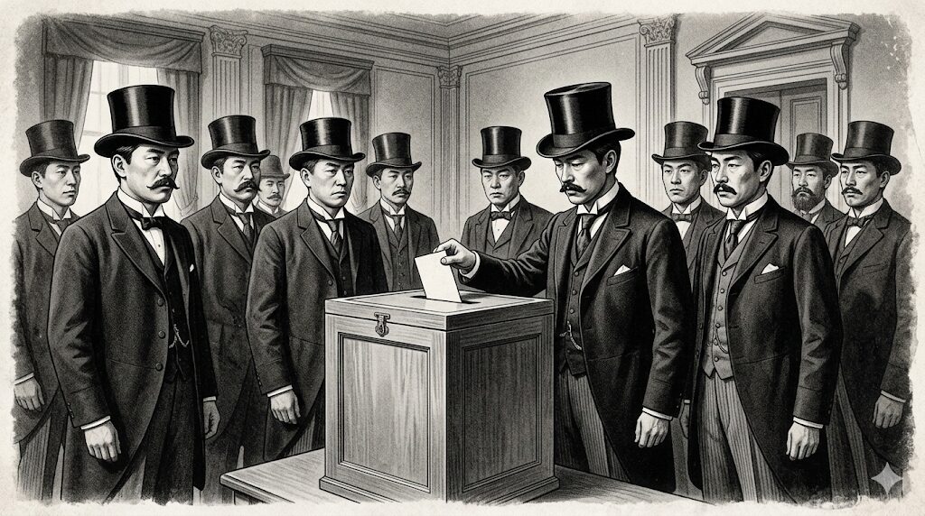 皆さんは、18歳になったら選挙に行けるのが「当たり前」だと思っていませんか? 実は、日本で初めて選挙が行われた1890年当時、投票所に足を運べたのは、なんと日本の全人口のたった「約1%」の超お金持ちのおじさんたちだけだったんです!