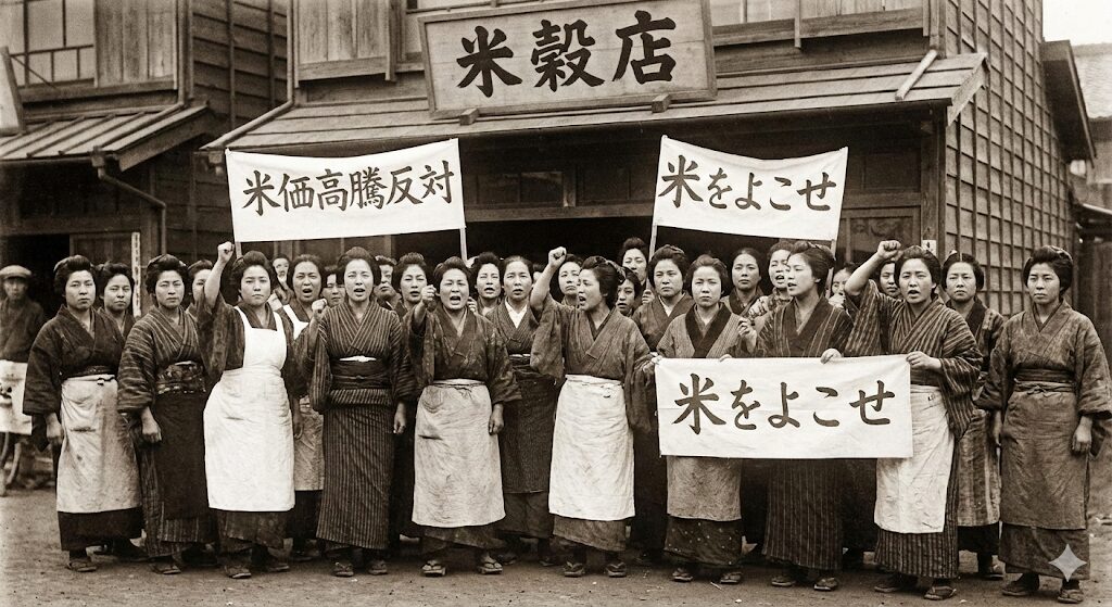 - 主婦の怒り: 富山県の漁村で「お米が高くて子供に食べさせられない!」とおばちゃんたちが立ち上がり、それが全国へ広がりました。