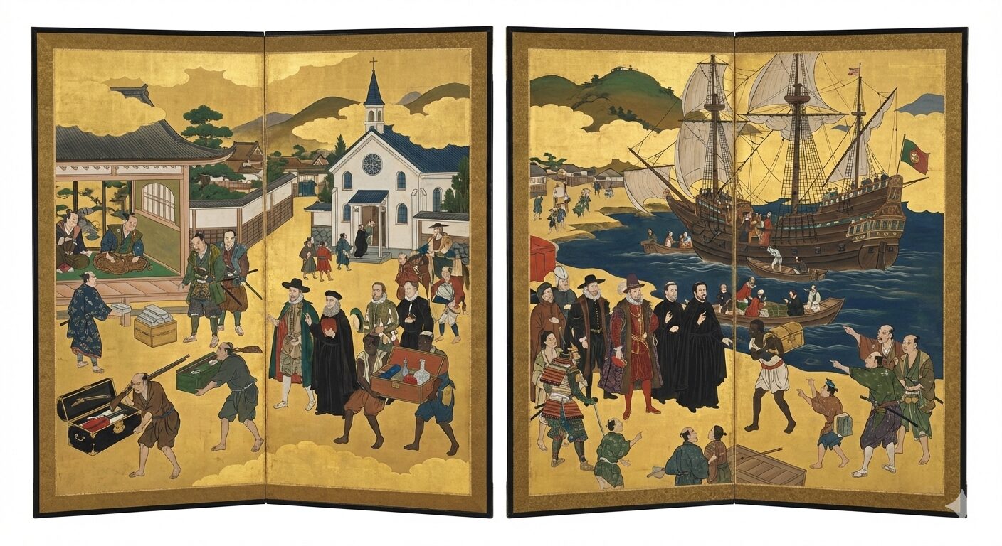 この記事では、大航海時代に日本へやってきたヨーロッパ人=南蛮人との出会いについて、教科書の絵から読み取れる情報やキリスト教・貿易・鉄砲の伝来など、当時の社会がどう動いたのかを中学生向けにわかりやすく解説します!