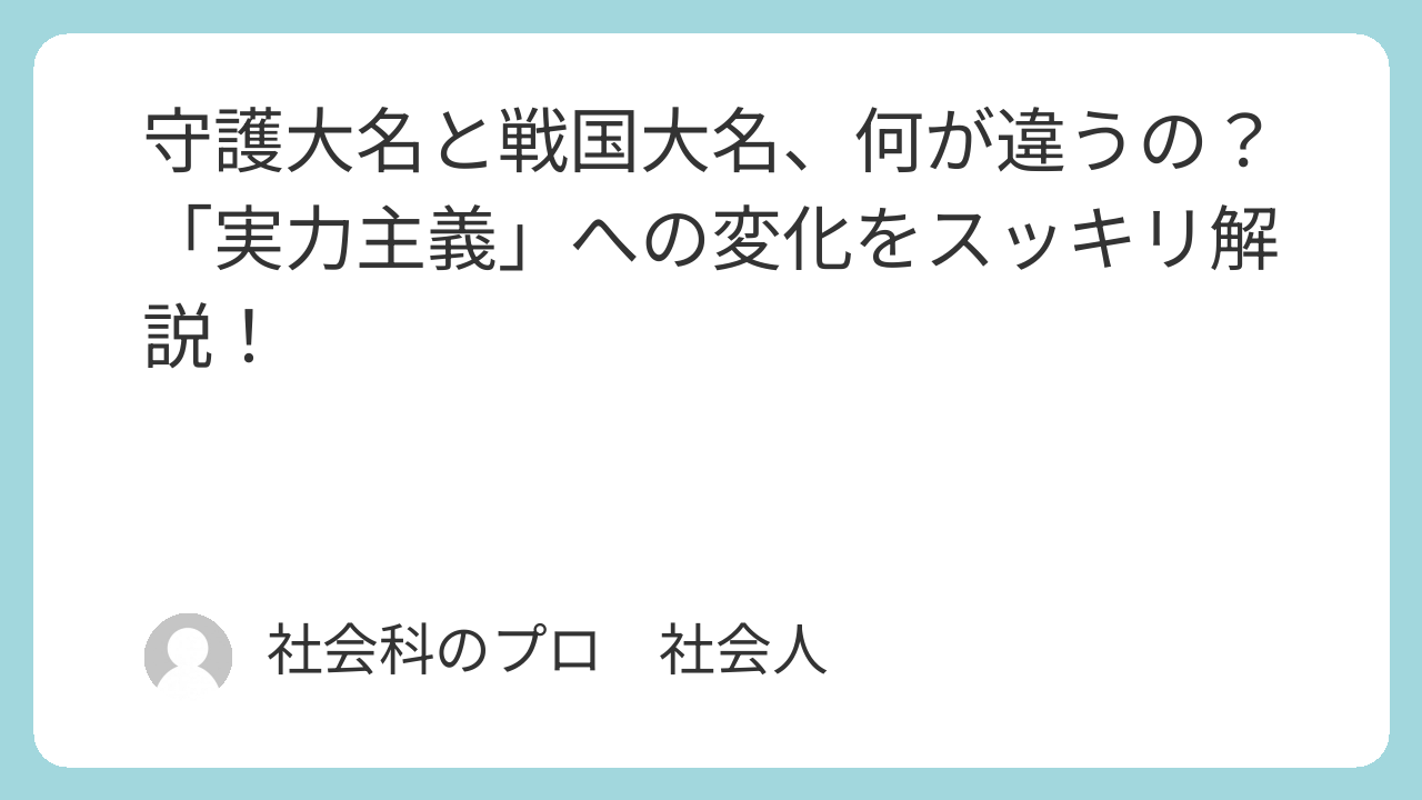 室町時代から戦国時代にかけて登場する「守護大名(しゅごだいみょう)」と「戦国大名(せんごくだいみょう)」。 名前にどちらも「大名」とついていますが、実はその正体やパワーの源はまったく別物なんです。