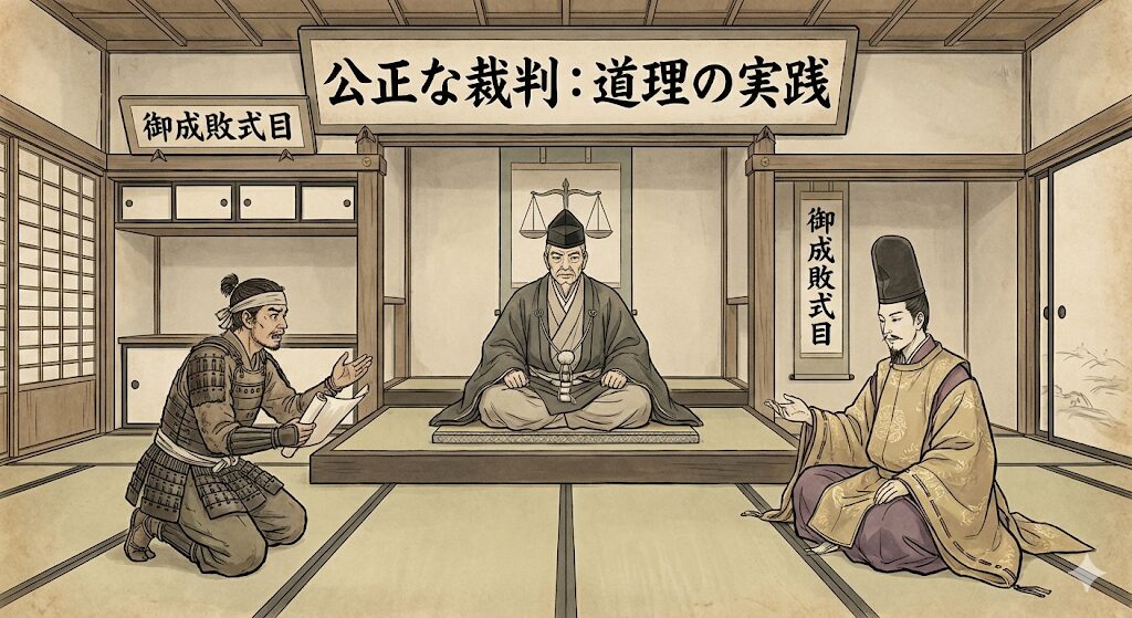 これまでの難しい貴族の法律ではなく、武士の社会でずっと守られてきた「ならわし(慣習)」や、人として正しい道=「道理(どうり)」を基準にしました。