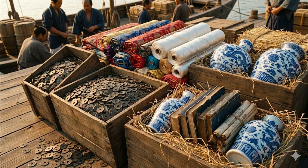 - 銅銭(明銭): これが一番重要! 当時の日本にはお金を作る技術がなかったので、「永楽通宝(えいらくつうほう)」などの中国のお金をそのまま日本のお金として使いました。