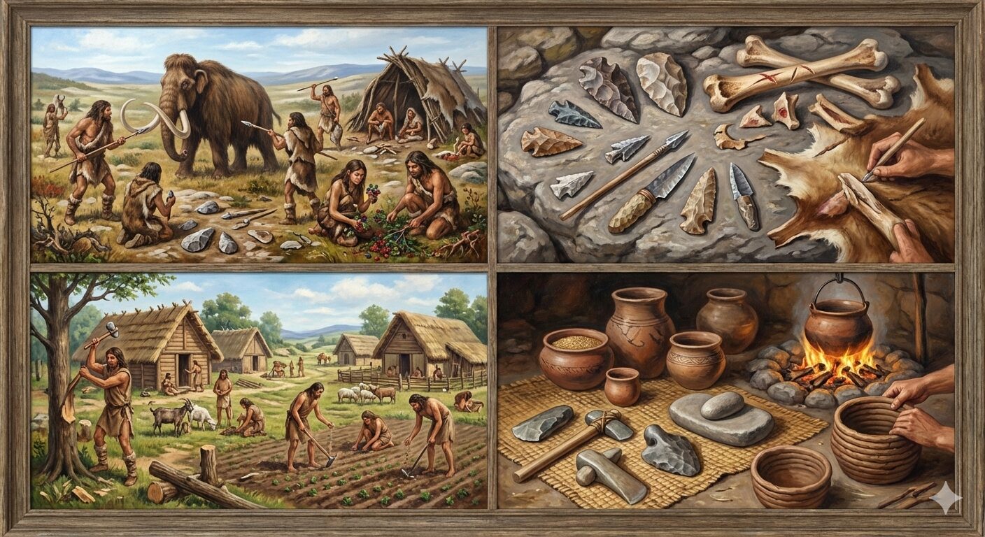 この記事では、旧石器時代と新石器時代の特徴や石器の進化、人々の生活のちがいについて、中学生にもやさしく解説します。社会のテスト対策や自由研究にもおすすめです!