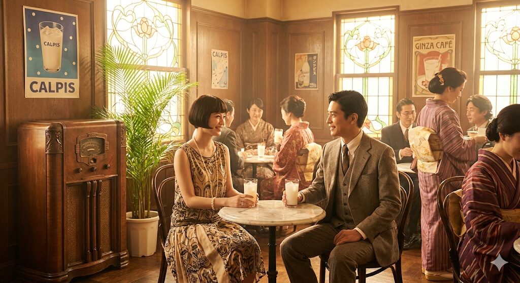 - カフェ文化: 若者がカフェで「カルピス」を飲みながらデートする。