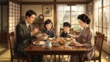 - 一家団らん: ちゃぶ台を囲んで、ラジオを聞きながら夕食を食べる。
