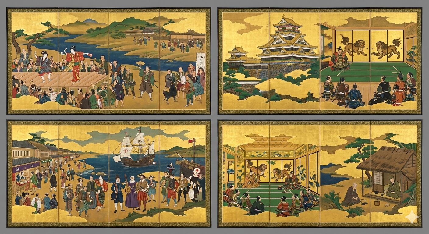 - 南蛮貿易など異文化が入り、にぎやかで開放的な時代背景のなかで、自由な表現が生まれた。