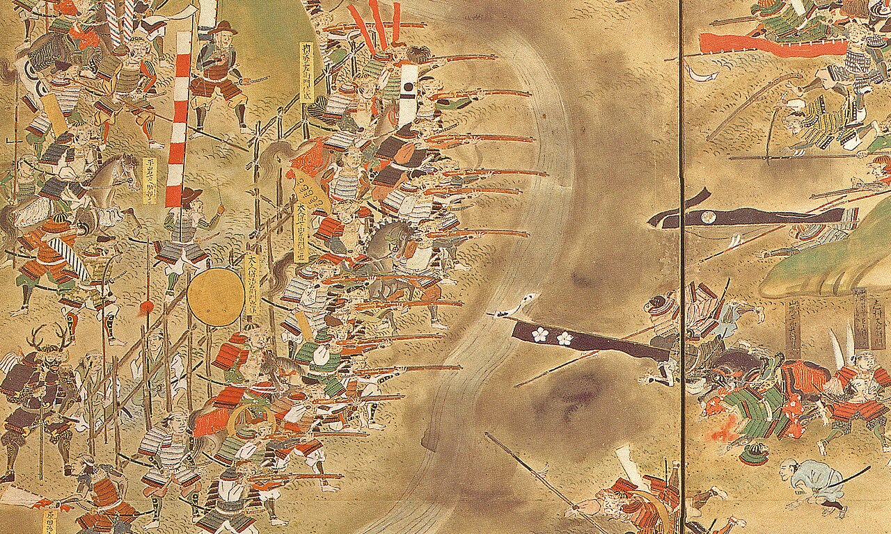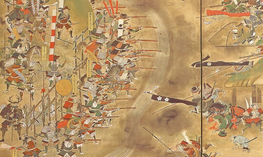 安土桃山時代のハイライトといえば、1575年の長篠(ながしの)の戦いです。 織田信長・徳川家康の連合軍が、当時日本最強といわれた武田勝頼の騎馬隊を打ち破ったこの戦い。
