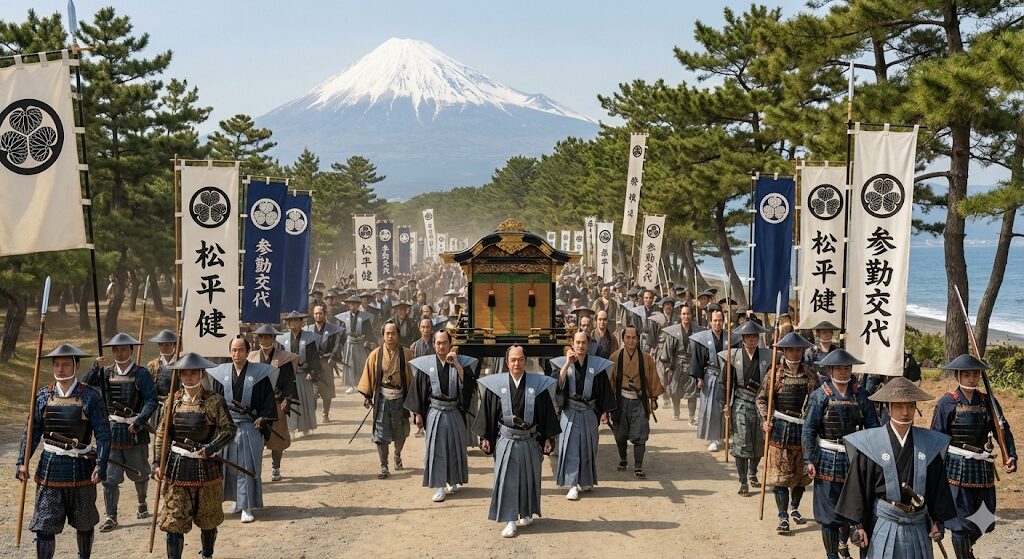 - 1年おきの往復: 1年を江戸で、1年を自分の領地で過ごします。