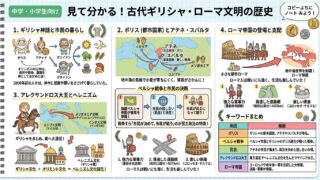 エジプト・メソポタミア・インダスの三大古代文明を、川・文字・暮らしの共通点から中学生向けにわかりやすく解説!暗唱チャレンジや記述問題にも対応しており、テスト対策にもぴったり!