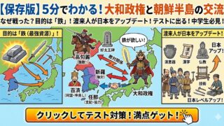 歴史 大和政権と朝鮮半島の「鉄」と「技術」のひみつ~日本をアップデートした最強の同名~ なぜ大和政権は朝鮮半島で戦ったの?目的である「鉄」の重要性や、高句麗との激闘を記した「好太王碑」、外交のプロ「倭の五王」、そして日本をアップデートした「渡来人」の技術まで、中高生向けにスッキリ解説!テストに出るポイントを網羅した決定版。 2024.04.05 古墳時代歴史